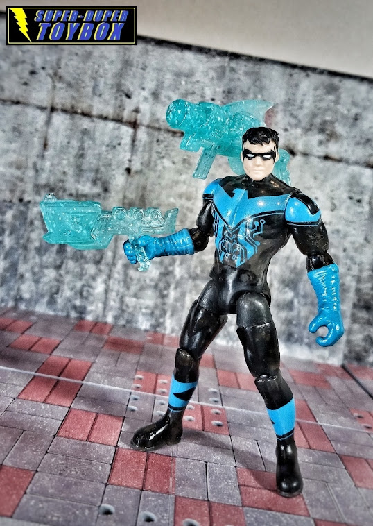 Like the Robins I found, this Nightwing has the Bat Tech lines on his outfit and has a translucent black buck. Spin Master went all-in across its DC toy lines with the Bat Tech branding. For whatever reason, Spinmaster gave Nightwing his signature escrima sticks molded into giant gauntlets, mine in sparkle-translucent blue nonetheless ridiculous.